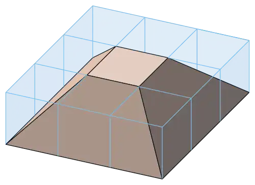 Subsequent researchers have found lifting-based realization algorithms that use only a linear number of bits per vertex.[20][24] It is also possible to relax the requirement that the coordinates be integers, and assign coordinates in such a way that the -coordinates of the vertices are distinct integers in the range from 0 to and the other two coordinates are real numbers in the unit interval, so that each edge has length at least one while the overall polyhedron has linear volume.[25][26] Some polyhedral graphs are known to be realizable on grids of only polynomial size; in particular this is true for the pyramids (realizations of wheel graphs), prisms (realizations of prism graphs), and stacked polyhedra (realizations of Apollonian networks).[27]