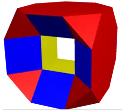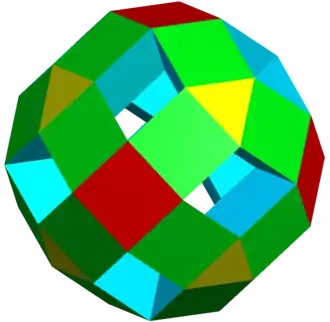 A special category of toroidal polyhedra are constructed exclusively by regular polygon faces, without crossings, and with a further restriction that adjacent faces may not lie in the same plane as each other. These are called Stewart toroids,[9] named after Bonnie Stewart, who studied them intensively.[10] They are analogous to the Johnson solids in the case of convex polyhedra; however, unlike the Johnson solids, there are infinitely many Stewart toroids.[11] They include also toroidal deltahedra, polyhedra whose faces are all equilateral triangles.