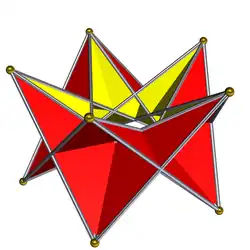 A crown polyhedron or stephanoid is a toroidal polyhedron which is also noble, being both isogonal (equal vertices) and isohedral (equal faces). Crown polyhedra are self-intersecting and topologically self-dual.[13]