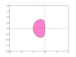 The pink region is the stability region for the second-order Adams–Bashforth method.
