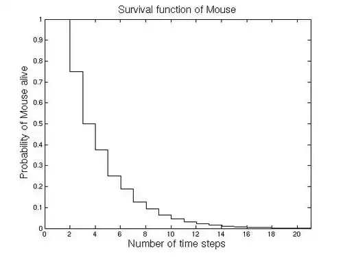 The survival function of the mouse. The mouse will survive at least the first time step.