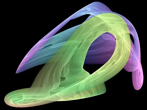 {{cite journal}}: CS1 maint: multiple names: authors list (link) - ↑ Ruelle, David; Takens, Floris (1971). "On the nature of turbulence". Communications in Mathematical Physics. 20 (3): 167–192. Bibcode:1971CMaPh..20..167R. doi:10.1007/bf01646553. S2CID 17074317.
