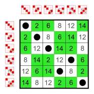 | + | 0 | 4 | 2 | 6 | 1 | 5 | 3 | 7 |