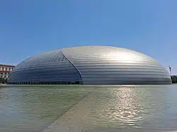 For the three-dimensional case, three different positive powers , and can be used in the equation . If , a super-ellipsoid is obtained. If any two or all three powers differ from each other, a solid is obtained that may possess more flexibility in representing real structural data than the super ellipsoid. A three-dimensional super-ellipsoid with , and the semi-diameters , represents the structure of the National Centre for the Performing Arts in China.[11]