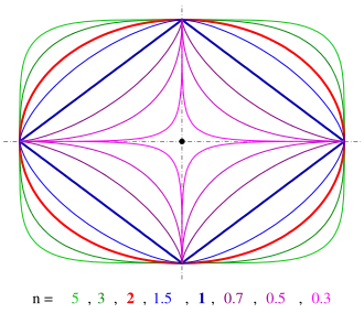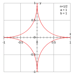 ![]() The superellipse with n = 1⁄2, a = b = 1 | |