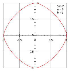 ![]() The superellipse with n = 3⁄2, a = b = 1 | |