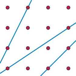 As Paul Erdős observed, the Sylvester–Gallai theorem immediately implies that any set of points that are not collinear determines at least different lines. This result is known as the De Bruijn–Erdős theorem. As a base case, the result is clearly true for . For any larger value of , the result can be reduced from points to points, by deleting an ordinary line and one of the two points on it (taking care not to delete a point for which the remaining subset would lie on a single line). Thus, it follows by mathematical induction. The example of a near-pencil, a set of collinear points together with one additional point that is not on the same line as the other points, shows that this bound is tight.[16]