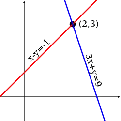 In mathematics, a system of linear equations (or linear system) is a collection of two or more linear equations involving the same variables.[1][2] For example,