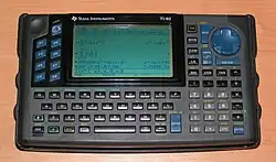 The TI-92 series are a line of graphing calculators produced by Texas Instruments. They include: the TI-92 (1995), the TI-92 II (1996), the TI-92 Plus (1998, 1999) and the Voyage 200 (2002). The design of these relatively large calculators includes a QWERTY keyboard. Because of this keyboard, it was given the status of a "computer" rather than "calculator" by American testing facilities and cannot be used on tests such as the SAT or AP Exams while the similar TI-89 can be.[1][2]