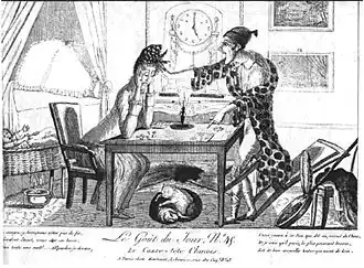 The earliest extant tangram was given to the Philadelphia shipping magnate and congressman Francis Waln in 1802 but it was not until over a decade later that Western audiences, at large, would be exposed to the puzzle.[1] In 1815, American Captain M. Donnaldson was given a pair of author Sang-Hsia-koi's books on the subject (one problem and one solution book) when his ship, Trader, docked there. They were then brought with the ship to Philadelphia in February 1816. The first tangram book to be published in America was based on the pair brought by Donnaldson.[12]