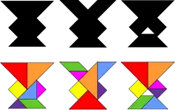 - ↑ Fu Traing Wang; Chuan-Chih Hsiung (November 1942). "A Theorem on the Tangram". The American Mathematical Monthly. 49 (9): 596–599. doi:10.2307/2303340. JSTOR 2303340.