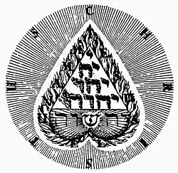 Symbol by early 17th-century Christian mystic Jakob Böhme, including a tetractys of flaming Hebrew letters of the Tetragrammaton.