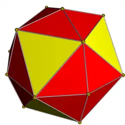 It can also be topologically constructed from the octahedron, dividing each triangular face into 4 triangles by adding mid-edge vertices (an ortho operation). From this construction, all 32 triangles will be equilateral.
