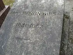 From the 1860s onwards, Hirst also allocated much of his time in England to the administrative committees of British science. He was an active member of the governing councils of the Royal Society, the British Association for the Advancement of Science, and the London Mathematical Society. He was the founding president of an association to reform school mathematics curricula and also worked to promote the education of women. Alongside his old friend Tyndall, Hirst was a member of T. H. Huxley's London X-Club. He died in London in 1892, four weeks after he had made the last entry in his journal, and was buried on the eastern side of Highgate Cemetery.[3][4]