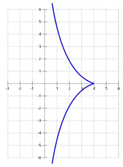 In geometry, a tractrix (from Latin trahere 'to pull, drag'; plural: tractrices) is the curve along which an object moves, under the influence of friction, when pulled on a horizontal plane by a line segment attached to a pulling point (the tractor) that moves at a right angle to the initial line between the object and the puller at an infinitesimal speed. It is therefore a curve of pursuit. It was first introduced by Claude Perrault in 1670, and later studied by Isaac Newton (1676) and Christiaan Huygens (1693).[1]