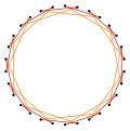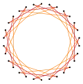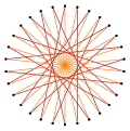 There are also isogonal triacontagrams constructed as deeper truncations of the regular pentadecagon {15} and pentadecagram {15/7}, and inverted pentadecagrams {15/11}, and {15/13}. Other truncations form double coverings: t{15/14}={30/14}=2{15/7}, t{15/8}={30/8}=2{15/4}, t{15/4}={30/4}=2{15/4}, and t{15/2}={30/2}=2{15}.[5]
