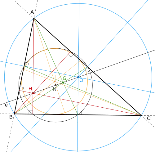 | X10 | Spieker center | Sp | Incenter of the medial triangle. Center of mass of a uniform triangular wireframe. | |
