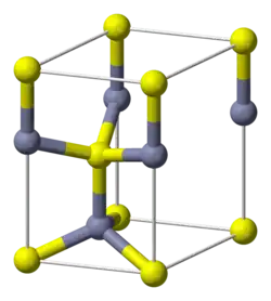 Among the compounds that can take the wurtzite structure are wurtzite itself (ZnS with up to 8% iron instead of zinc), silver iodide (AgI), zinc oxide (ZnO), cadmium sulfide (CdS), cadmium selenide (CdSe), silicon carbide (α-SiC), gallium nitride (GaN), aluminium nitride (AlN), boron nitride (w-BN) and other semiconductors.[14] In most of these compounds, wurtzite is not the favored form of the bulk crystal, but the structure can be favored in some nanocrystal forms of the material.