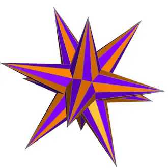 - ↑ Coxeter, H. S. M.; Longuet-Higgins, M. S.; Miller, J. C. P. (1954), "Uniform polyhedra", Philosophical Transactions of the Royal Society of London. Series A. Mathematical and Physical Sciences, 246 (916): 401–450, Bibcode:1954RSPTA.246..401C, doi:10.1098/rsta.1954.0003, JSTOR 91532, MR 0062446. See especially the description as a quasitruncation on p. 411 and the photograph of a model of its skeleton in Fig. 114, Plate IV.