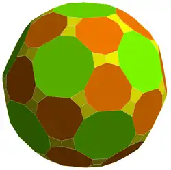 In geometry, a truncated icosidodecahedron, rhombitruncated icosidodecahedron,[1] great rhombicosidodecahedron,[2][3] omnitruncated dodecahedron or omnitruncated icosahedron[4] is an Archimedean solid, one of thirteen convex, isogonal, non-prismatic solids constructed by two or more types of regular polygon faces.