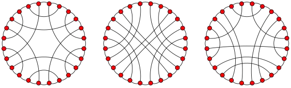As a Hamiltonian cubic graph, it can be represented by LCF notation in multiple ways: [3, −7, 7, −3]6, [5, −11, 11, 7, 5, −5, −7, −11, 11, −5, −7, 7]2, and [−11, 5, −3, −7, −9, 3, −5, 5, −3, 9, 7, 3, −5, 11, −3, 7, 5, −7, −9, 9, 7, −5, −7, 3].[22]