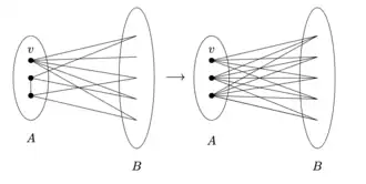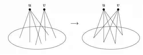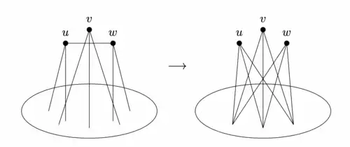 - If are vertices with and non-adjacent but adjacent, then replace both and with copies of .