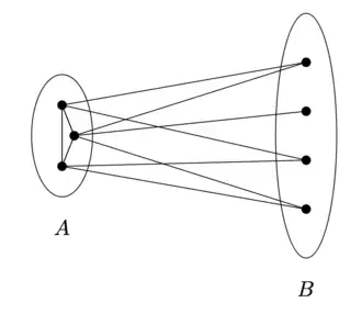 - There are at most edges between and , since no vertex in can connect to all of .