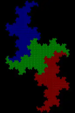 - ↑ Edgar, Gerald (2008), "Heighway's Dragon", in Edgar, Gerald (ed.), Measure, Topology, and Fractal Geometry, Undergraduate Texts in Mathematics (2nd ed.), New York: Springer, pp. 20–22, doi:10.1007/978-0-387-74749-1, ISBN 978-0-387-74748-4, MR 2356043