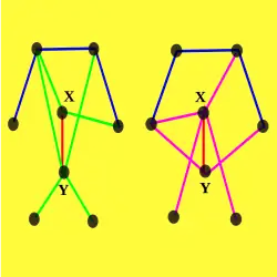 Let Γ be a two-graph on the set X. For any element x of X, define a graph with vertex set X having vertices y and z adjacent if and only if {x, y, z} is in Γ. In this graph, x will be an isolated vertex. This construction is reversible; given a simple graph G, adjoin a new element x to the set of vertices of G, retaining the same edge set, and apply the standard construction above. This two-graph is called the extension of G by x in design theoretic language.[3] In a given switching class of graphs of a regular two-graph, let Γx be the unique graph having x as an isolated vertex (this always exists, just take any graph in the class and switch the open neighborhood of x) without the vertex x. That is, the two-graph is the extension of Γx by x. In the first example above of a regular two-graph, Γx is a 5-cycle for any choice of x.[4]