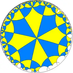 In geometry, a symmetry mutation is a mapping of fundamental domains between two symmetry groups.[1] They are compactly expressed in orbifold notation. These mutations can occur from spherical tilings to Euclidean tilings to hyperbolic tilings. Hyperbolic tilings can also be divided between compact, paracompact and divergent cases.