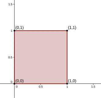 In mathematics, a unit square is a square whose sides have length 1. Often, the unit square refers specifically to the square in the Cartesian plane with corners at the four points (0, 0), (1, 0), (0, 1), and (1, 1).[1]