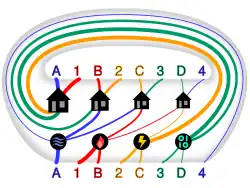 - 1 2 Kullman, David (1979), "The utilities problem", Mathematics Magazine, 52 (5): 299–302, doi:10.1080/0025570X.1979.11976807, JSTOR 2689782