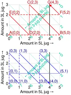 - ↑ Weisstein, Eric W. "Three Jug Problem". mathworld.wolfram.com. Retrieved 27 August 2019.