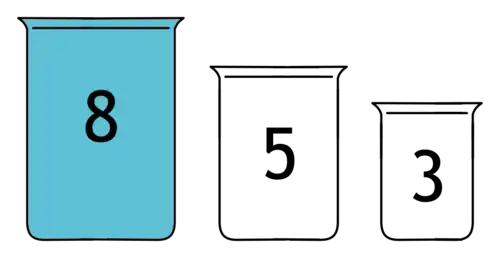 Puzzles of this type ask how many steps of pouring water from one jug to another (until either one jug becomes empty or the other becomes full) are needed to reach a goal state, specified in terms of the volume of liquid that must be present in some jug or jugs.[3]
