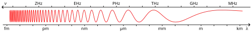 Assuming a sinusoidal wave moving at a fixed wave speed, wavelength is inversely proportional to the frequency of the wave: waves with higher frequencies have shorter wavelengths, and lower frequencies have longer wavelengths.[6]