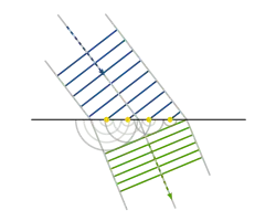 - ↑ To aid imagination, this bending of the wave often is compared to the analogy of a column of marching soldiers crossing from solid ground into mud. See, for example, Raymond T. Pierrehumbert (2010). Principles of Planetary Climate. Cambridge University Press. p. 327. ISBN 978-0-521-86556-2.