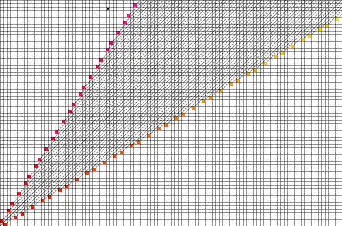 Any position in the game can be described by a pair of integers (n, m) with n ≤ m, describing the size of both piles in the position or the coordinates of the queen. The strategy of the game revolves around cold positions and hot positions: in a cold position, the player whose turn it is to move will lose with best play, while in a hot position, the player whose turn it is to move will win with best play. The optimal strategy from a hot position is to move to any reachable cold position.