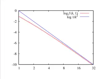 Probability mass function ![]() Yule–Simon PMF on a log-log scale. (Note that the function is only defined at integer values of k. The connecting lines do not indicate continuity.) | |||