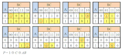 | A | B | C | 1 | C | B | BC | A | AC | AB | ABC | |
