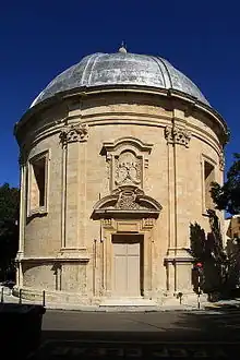 A number of niches and churches were built to give thanks by survivors of the plague, including the Sarria Church in Floriana, which was rebuilt by the Order after a vow made during the epidemic.[8] This building was designed by Mattia Preti, who was in Malta at the time of the epidemic and survived by staying in Żurrieq.[9]