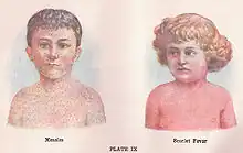 The 1875–1876 Australia scarlet fever epidemic was a severe outbreak of scarlet fever in the British colonies of Victoria and New South Wales in Australia. Part of a series of measles and scarlet fever epidemics in Victoria as a result of poor sanitation in the post-gold rush era, the epidemic claimed in both colonies the lives of over 8,000 people, mainly children.[1] The epidemic became Australia's third deadliest disaster by terms of death toll, and Victoria's worst, but also last major outbreak of scarlet fever.[2][3]
