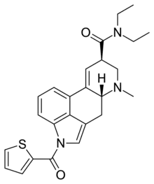 - ↑ Okada Y, Ueno K, Nishiwaki N, Nishimura T, Segawa H, Yamamuro T, et al. (July 2023). "Identification of 1-(thiophene-2-carbonyl)-LSD from blotter paper falsely labeled "1D-LSD"". Forensic Toxicology. 42 (1): 93–101. doi:10.1007/s11419-023-00668-8. PMID 37421500. S2CID 259374662.