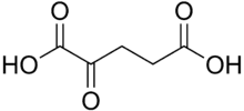 α-Ketoglutaric acid is an organic compound with the formula H2CC(O)(CH2)2CO2H). A white, nontoxic solid, it is a common dicarboxylic acid. Relevant to its biological roles, it exists in water as its conjugate base α-ketoglutarate. It is also classified as a 2-ketocarboxylic acid. β-Ketoglutaric acid is an isomer. "Ketoglutaric acid" and "ketoglutarate", when not qualified as α or β, almost always refers respectively to α-ketoglutaric acid or α-ketoglutarate.[2]