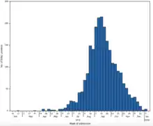 Cases peaked in September 2019, and declined thereafter. The decline led CDC to stop reporting EVALI cases in February 2020, but as of December 2020, continued to monitor cases arriving in emergency departments.[4] Some states continued to record new EVALI cases. As of January 2022, California had reported at least 40 cases diagnosed after February 2020.[5] As of March 2022, EVALI cases continued to be diagnosed.[6] At least 73 cases were diagnosed in Utah after February 2020.[7]