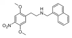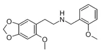 - ↑ Hansen M, Phonekeo K, Paine JS, Leth-Petersen S, Begtrup M, Bräuner-Osborne H, et al. (March 2014). "Synthesis and structure-activity relationships of N-benzyl phenethylamines as 5-HT2A/2C agonists". ACS Chemical Neuroscience. 5 (3): 243–249. doi:10.1021/cn400216u. PMC 3963123. PMID 24397362.