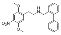 25N-NBPh[46] | N-[(2-phenyl)benzyl]-1-(2,5-dimethoxy-4-nitrophenyl)-2-aminoethane | 2,5-dimethoxy-4-nitro | H | o-biphenyl | |