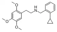 - ↑ Juncosa JI, Hansen M, Bonner LA, Cueva JP, Maglathlin R, McCorvy JD, et al. (January 2013). "Extensive rigid analogue design maps the binding conformation of potent N-benzylphenethylamine 5-HT2A serotonin receptor agonist ligands". ACS Chemical Neuroscience. 4 (1): 96–109. doi:10.1021/cn3000668. PMC 3547484. PMID 23336049.