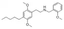 25AM-NBOMe [47] | N-(2-methoxybenzyl)-1-[2,5-dimethoxy-4-pentylphenyl]-2-aminoethane | 2,5-dimethoxy-4-(n-pentyl) | H | 2-methoxyphenyl | |
