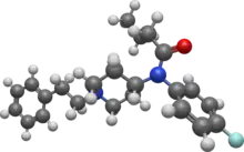 - ↑ Ulens C, Van Boven M, Daenens P, Tytgat J (September 2000). "Interaction of p-fluorofentanyl on cloned human opioid receptors and exploration of the role of Trp-318 and His-319 in mu-opioid receptor selectivity". The Journal of Pharmacology and Experimental Therapeutics. 294 (3): 1024–33. doi:10.1016/S0022-3565(24)39167-0. PMID 10945855.