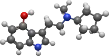 - ↑ Repke DB, Ferguson WJ, Bates DK (January 1981). "Psilocin analogs II. Synthesis of 3-[2-(dialkylamino) ethyl]-, 3-[2-(N-methyl-N-alkylamino) ethyl]-, and 3-[2-(cycloalkylamino) ethyl] indol-4-ols". Journal of Heterocyclic Chemistry. 18 (1): 175–9. doi:10.1002/jhet.5570180131.